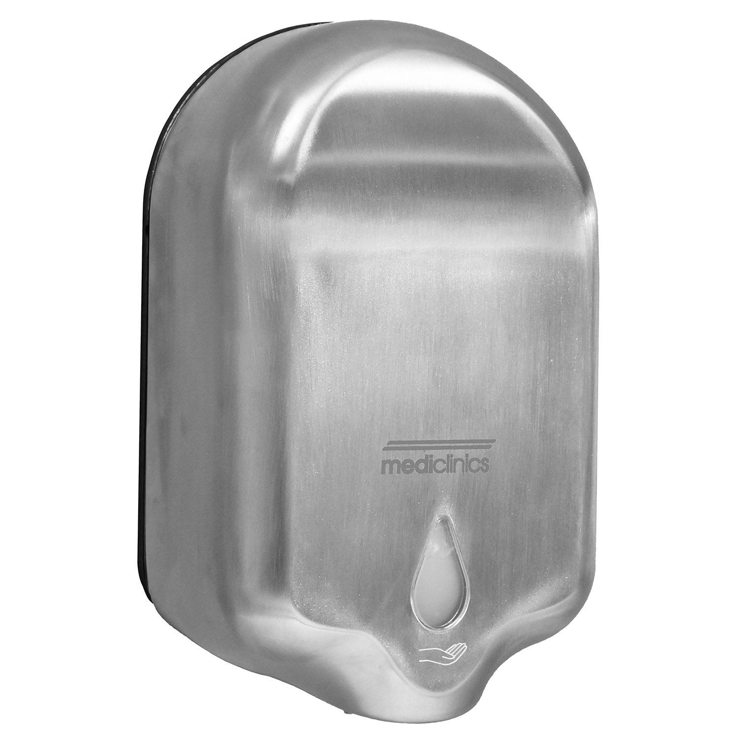 Бесконтактный настенный дозатор жидкого мыла или дезинфицирующего средства для рук объёмом 1,2 л, изготовленный из нержавеющей стали сатиновой AISI 304.