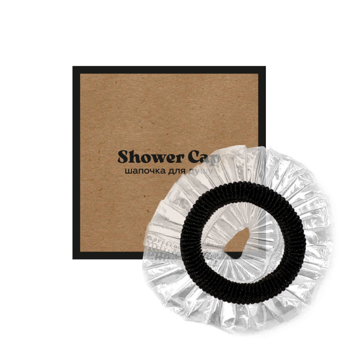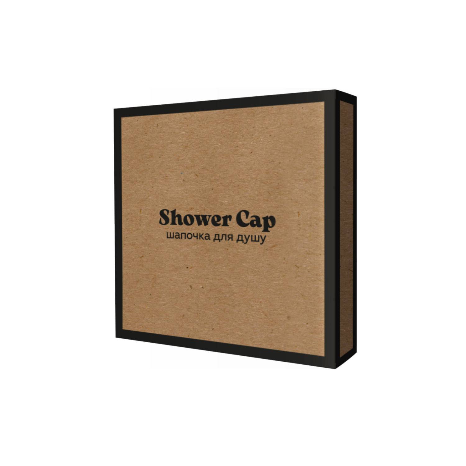 Шапочка для душа с резинкой для волос в стильной коробочке из крафтового картона.