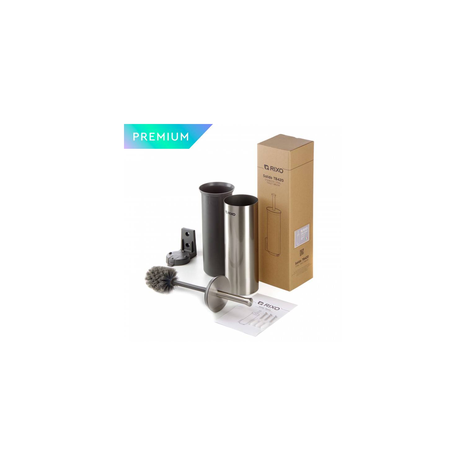 Щетка для унитаза Rixo Solido TB420S – новая модель премиального сегмента Rixo, изготовленная из высококачественной нержавеющей стали. Щетка оснащена съемным пластиковым контейнером и настенным кронштейном, что позволяет удобно очищать как сам ершик, так и окружающее пространство. Для напольного использования в конструкции предусмотрены резиновые вставки, которые обеспечивают устойчивость и предотвращают появление царапин на полу. Чтобы снять или установить настенный крепеж, достаточно зажать кнопку на кронштейне и слегка повернуть его. Ершик изготовлен из качественных, прочных и коррозионностойких материалов, имеет эргономичную ручку и упругую щетку, что значительно продлевает срок эксплуатации. Современный внешний вид, оригинальный и стильный дизайн Solido TB420S гармонично впишется в интерьер любой ванной, а новые премиальные модели Rixo прекрасно сочетаются со всеми уже знакомыми изделиями коллекции Solido.