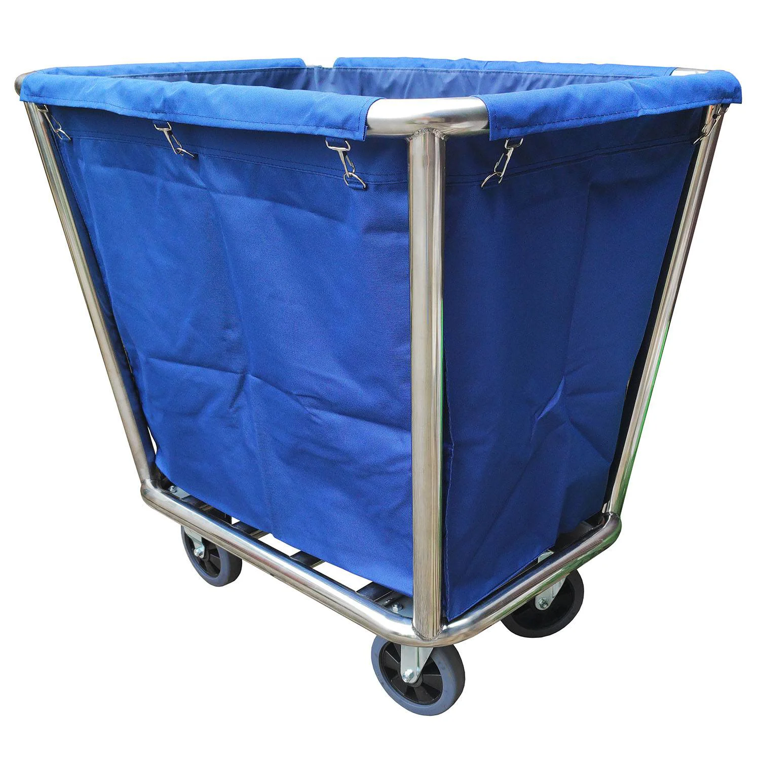 Простая в использовании тележка для белья, со съемным мешком для белья. Его конструкция включает прочный каркас, съемный холщовый мешок для удобного использования и 4 бесшумных колеса. Тележкой легко управлять. Два колеса поворотные.