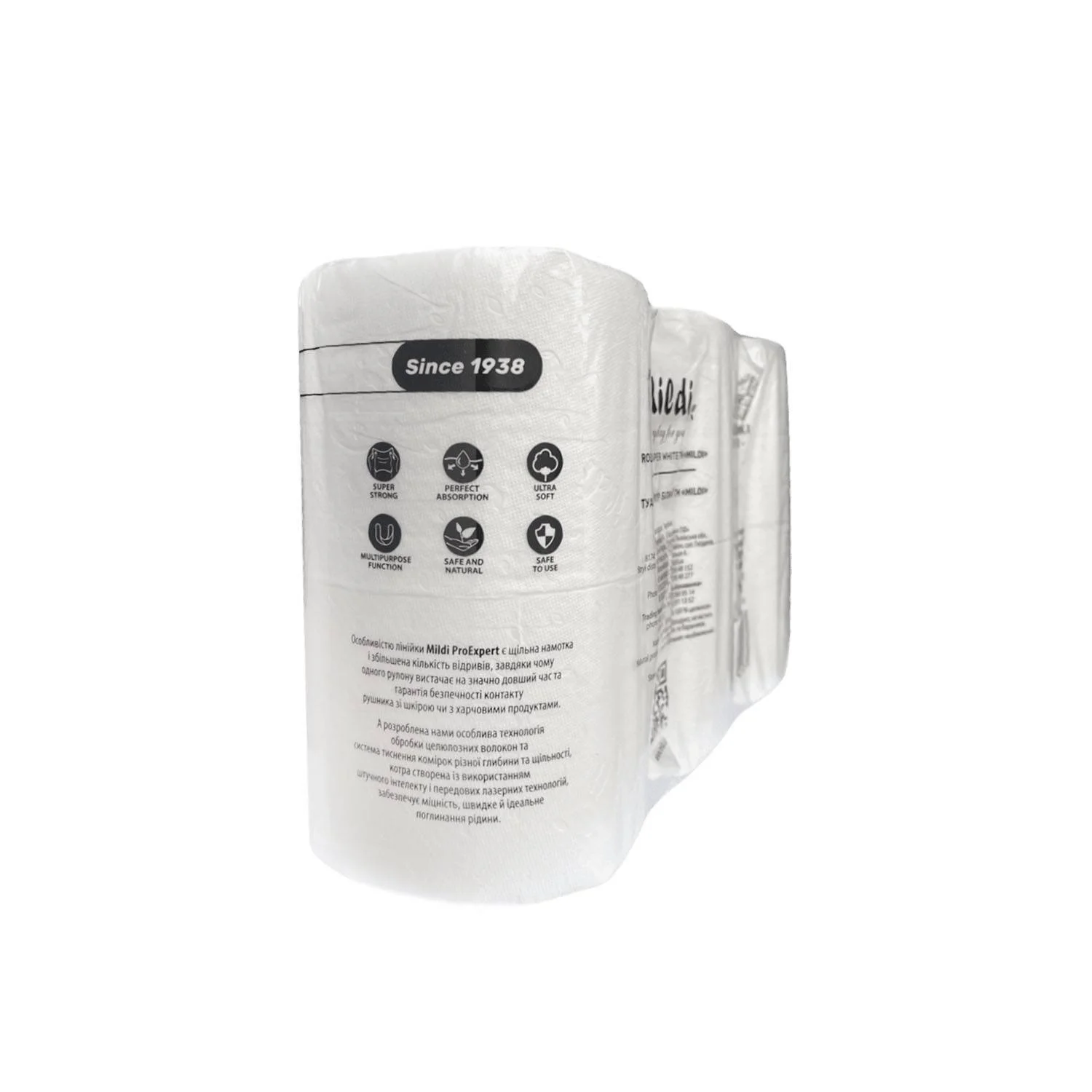 Туалетная бумага на гильзе «Mildi» изготовлена из 100% целлюлозы, натуральный продукт, не содержит ароматизаторов и красителей.