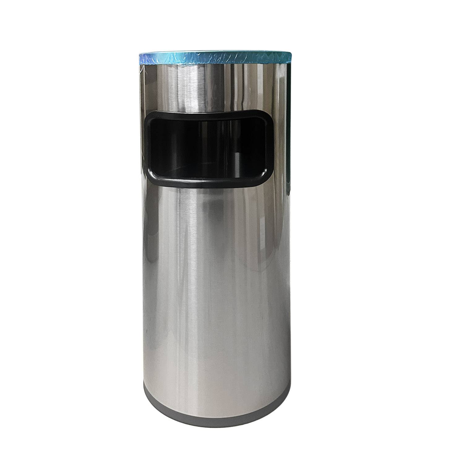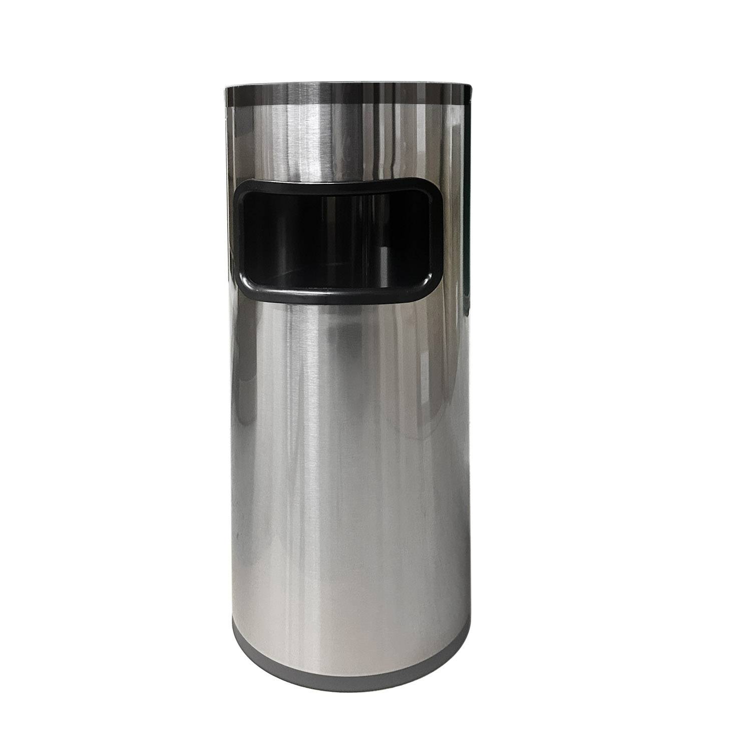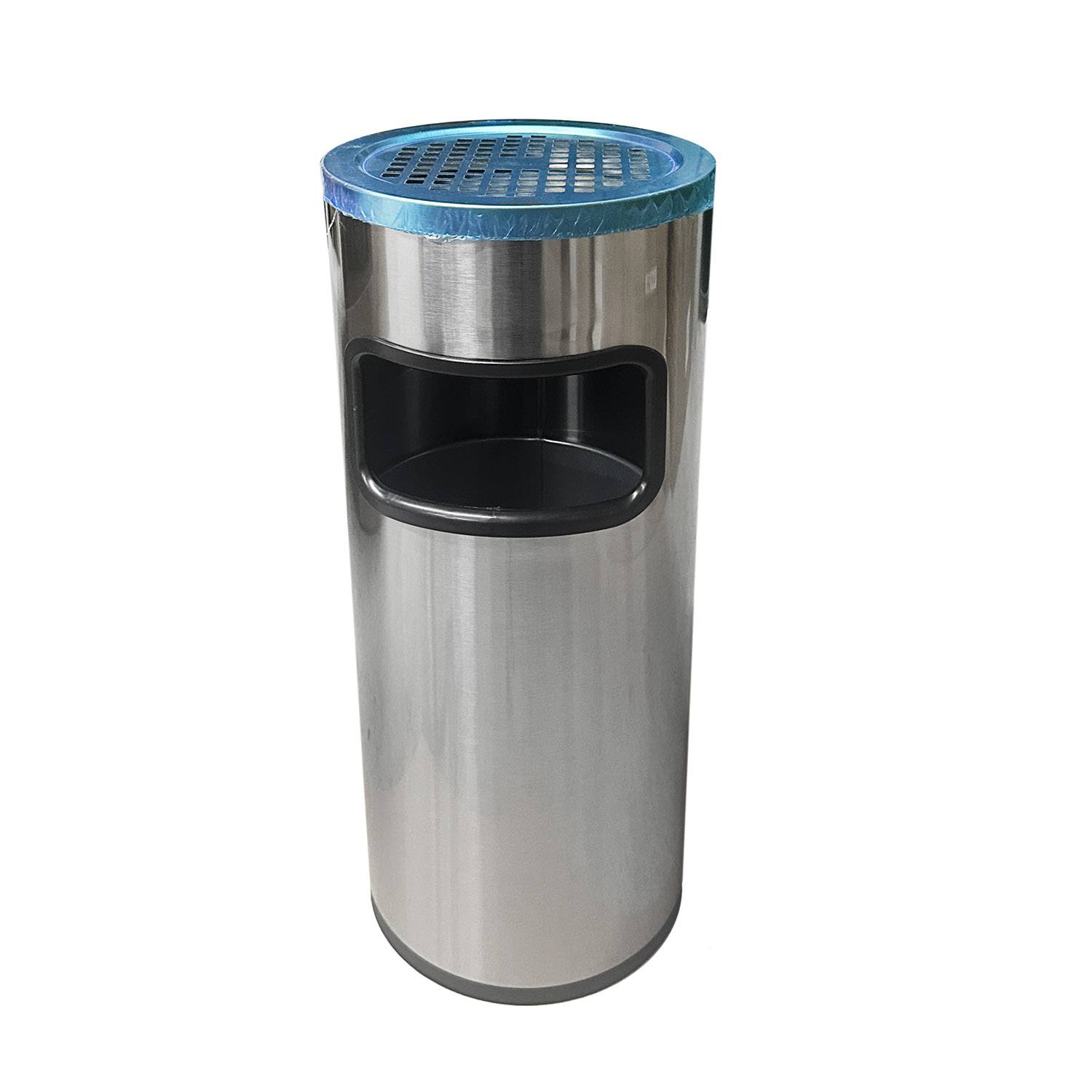 Мусорное ведро с поворотной крышкой изготовлено из нержавеющей стали AISI 410. Урна оснащена металлической съемной крышкой-пепельницей, в корпусе урны предусмотрено мусорное отверстие.