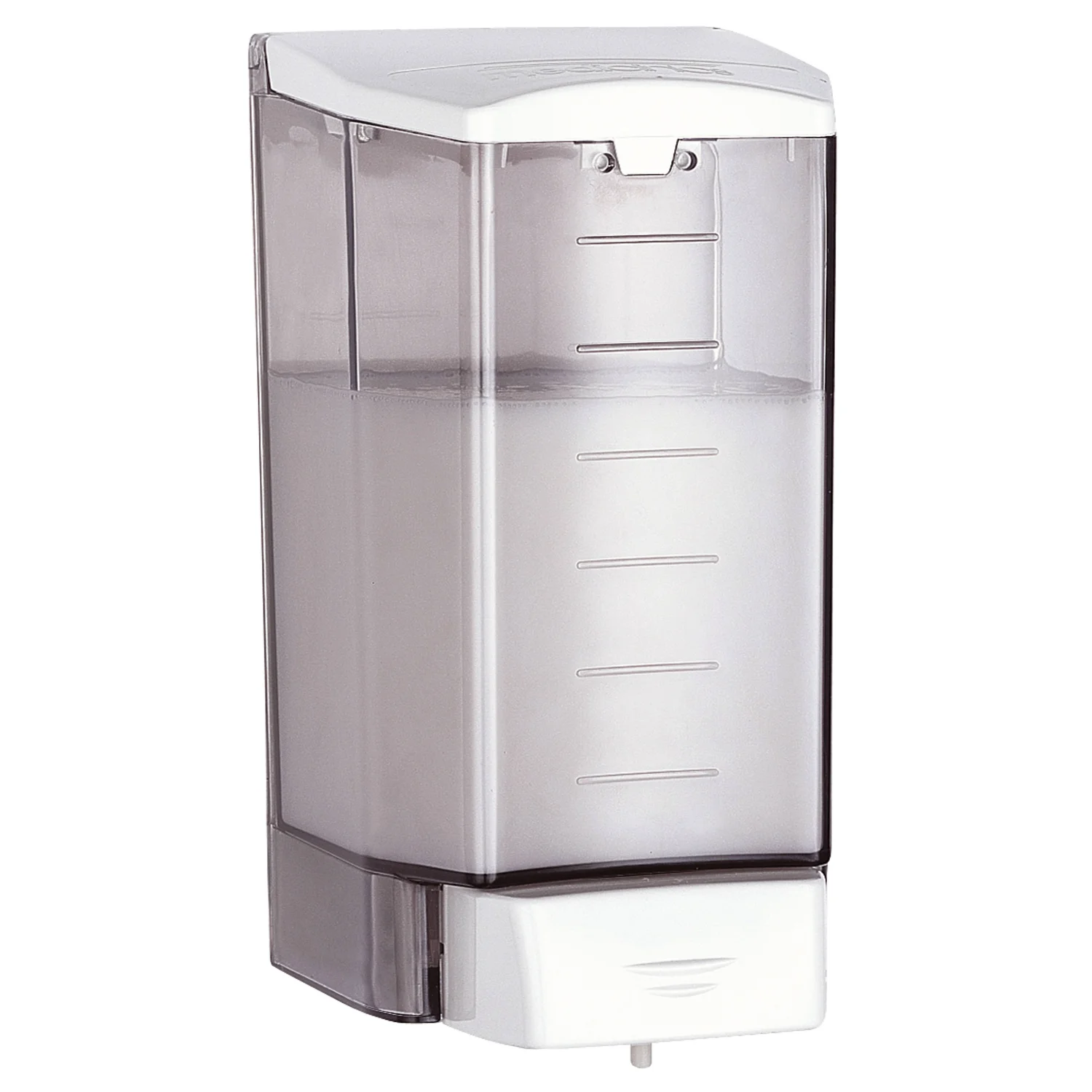Дозатор рідкого мила виконаний з міцного пластику ABS. Порція мила видається при натисканні на білу кнопку, що знаходиться на передній частині пристрою. Прозорий димчастий корпус дозволяє легко встановлювати рівень мила в дозаторі. Кріпиться на стіну за допомогою 4-х шурупів довжиною 5 мм (кріплення входить в комплект), Кришка відкривається за допомогою стандартного ключа Mediclinics. Оснащений антикапельним антикорозійним клапаном.