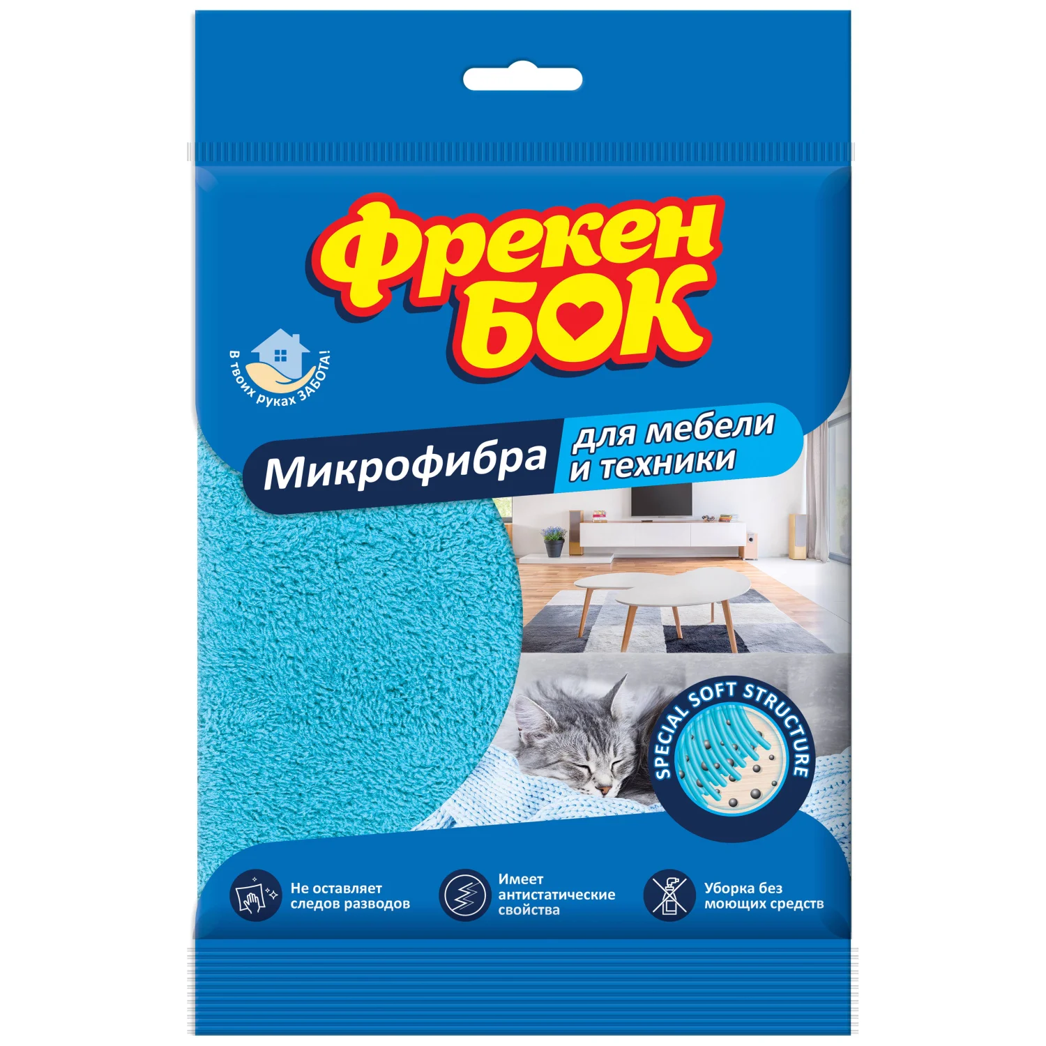 Серветка виготовлена з унікального матеріалу – мікрофібри. Завдяки своїй надтонкій структурі волокна мікрофібри проникають у важкодоступні місця будь-яких поверхонь і, як магніт, збирають на себе пил та маленькі частинки бруду. Серветка дозволяє видаляти забруднення навіть без миючих засобів. Ідеально прибирає пил, крапельки жиру та інші забруднення, не залишаючи розлучень та ворсу.