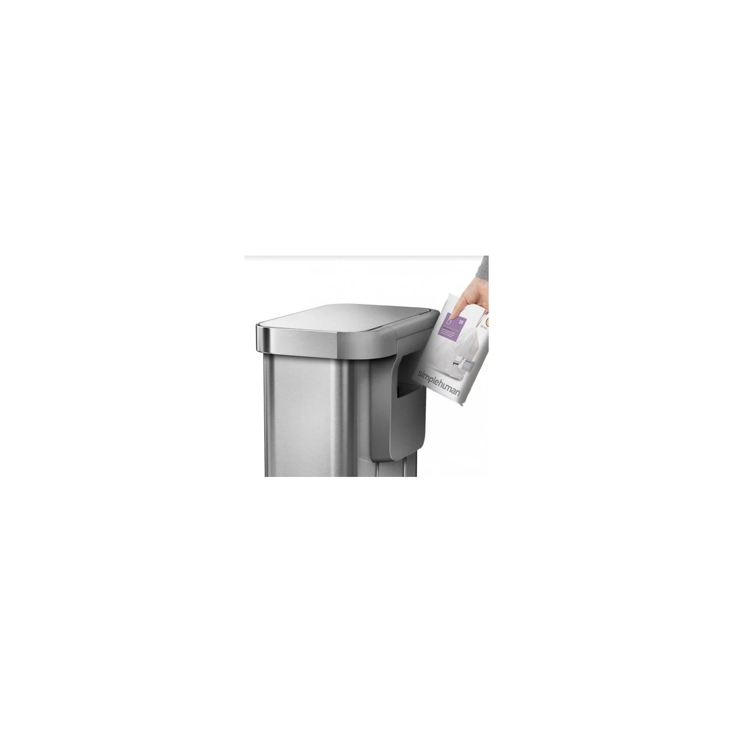 Відро з педаллю має прямокутну форму, виготовлено з нержавіючої сталі зі спеціальним покриттям FPP, на якому не залишається слідів відбитків пальців і патьоків. Родзинкою цього відра є кишеню, в якому зберігаються запасні сміттєві мішки для більш швидкої їх зміни. Обід з нержавіючої сталі утримує мішок всередині відра і приховує його. Відсутність внутрішнього відра залишає більше простору для сміття. Міцна широка педаль і запатентована технологія кришки Shox забезпечує плавне і безшумне закриття урни. Підходять мішки з кодом Q.