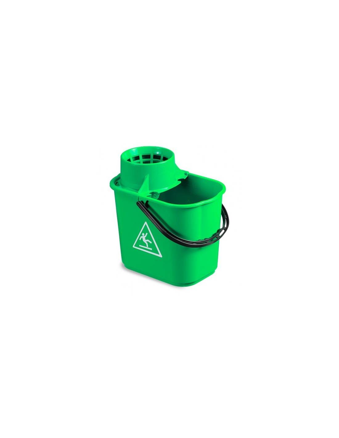 Просте поліпропіленове відро зеленого кольору, об'ємом 14 л з віджимом та ручкою.
